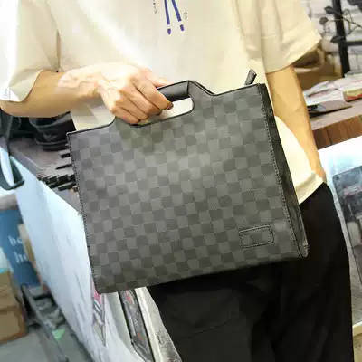 Handbag men Korean plaid fashion brand handbag file envelope envelope bag shoulder shoulder cross body Fashion casual men's bag