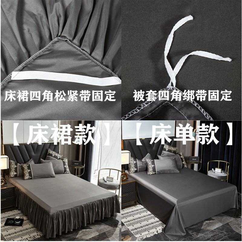 European-style luxury lace bed skirt four-piece with bed cover upscale double-sided silk princess wind pure cotton