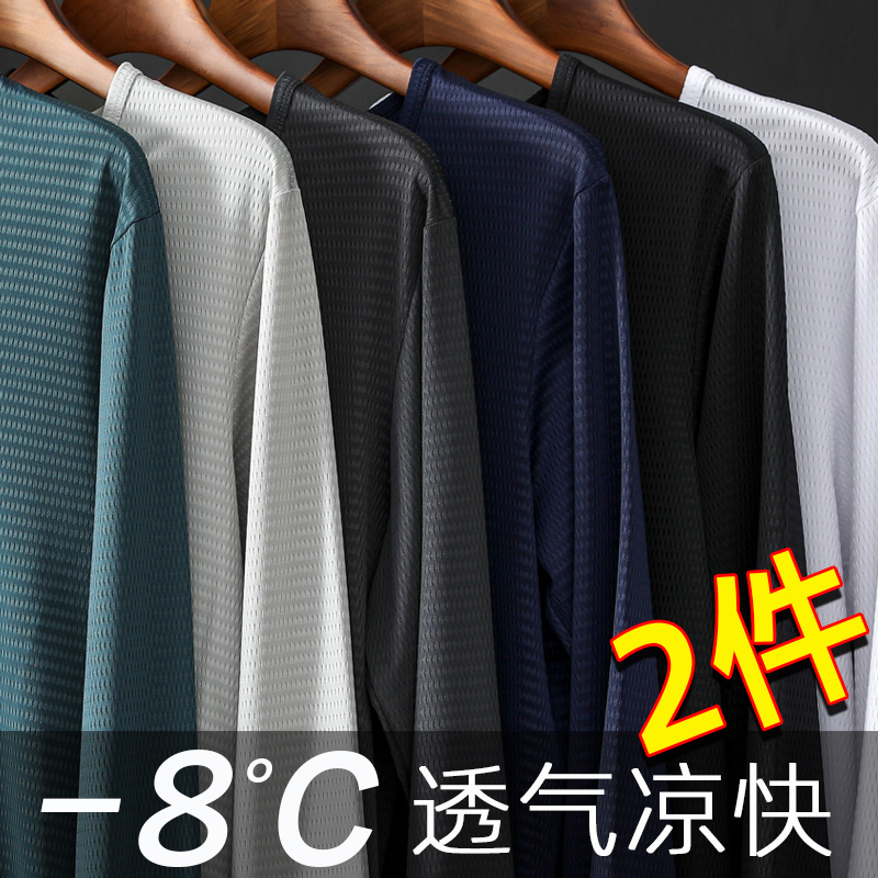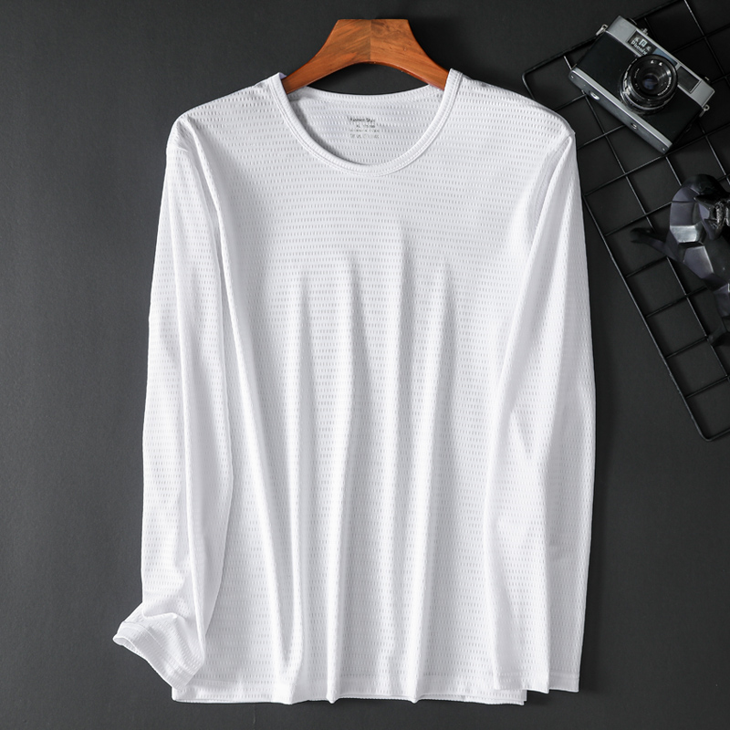 Summer ice silk long sleeves men Thin T-shirt breathable quick-drying air conditioning outdoor sunscreen bottoming outside wear inch shirt top