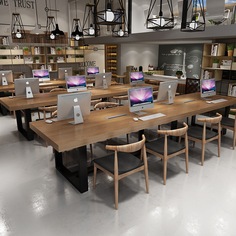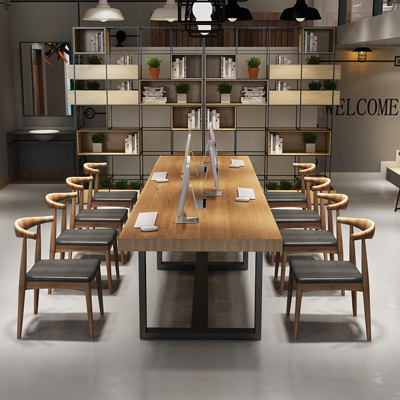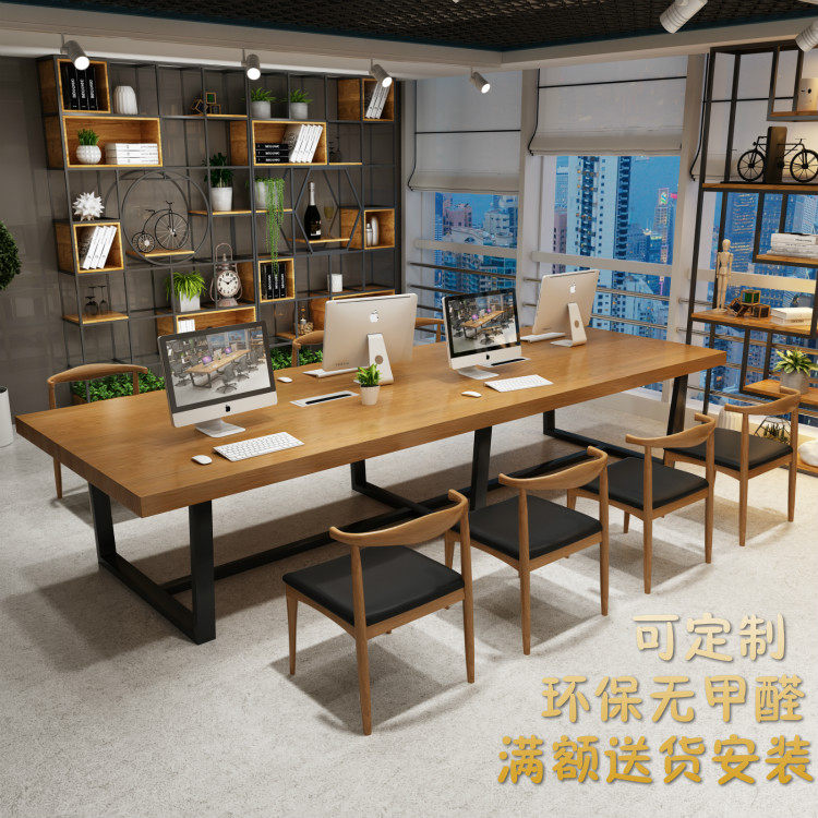 Italian modern simple solid wood iron conference table minimalist office long table reception negotiation large board table and chair combination