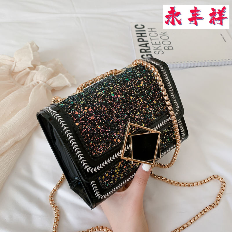 Popular bag women's 2021 new tide Korean version of Joker messenger bag patent leather glitter bag chain fashion small square bag