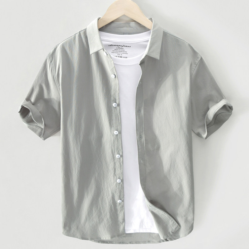 Day Ensemble Retro Pure Color Short Sleeve Shirt Men Summer Thin style Casual Blouse Trendy Loose Half Sleeve Pure Cotton Shirt