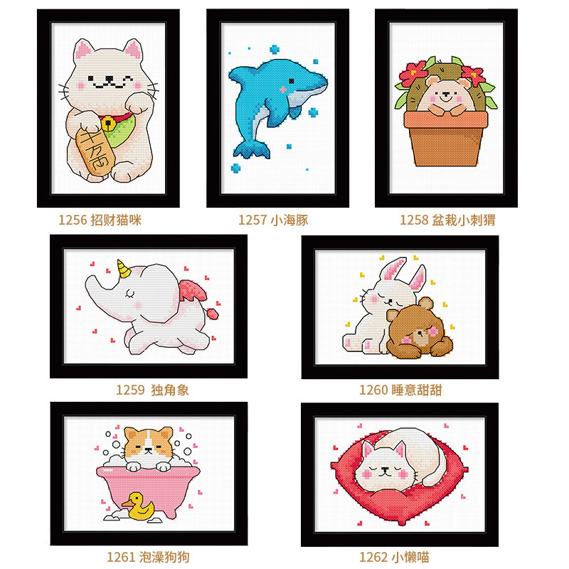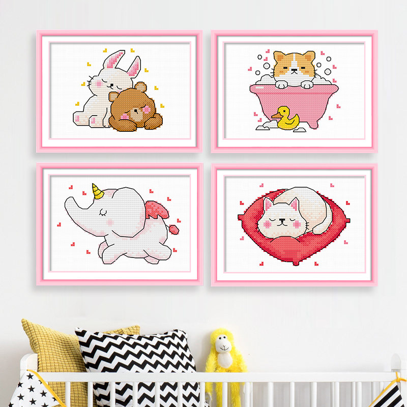 Cross embroidered 2022 new line embroidered beginners own embroidered children's room students handmade cartoon animals small pieces simple