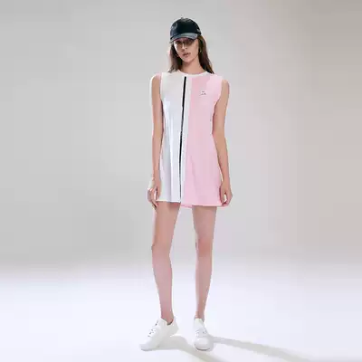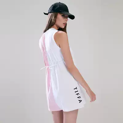 TIFFAFit Summer Peach Pink White Contrast Sleeveless Loose Loose Women Round Neck Mini Skirt (Fully Lined)