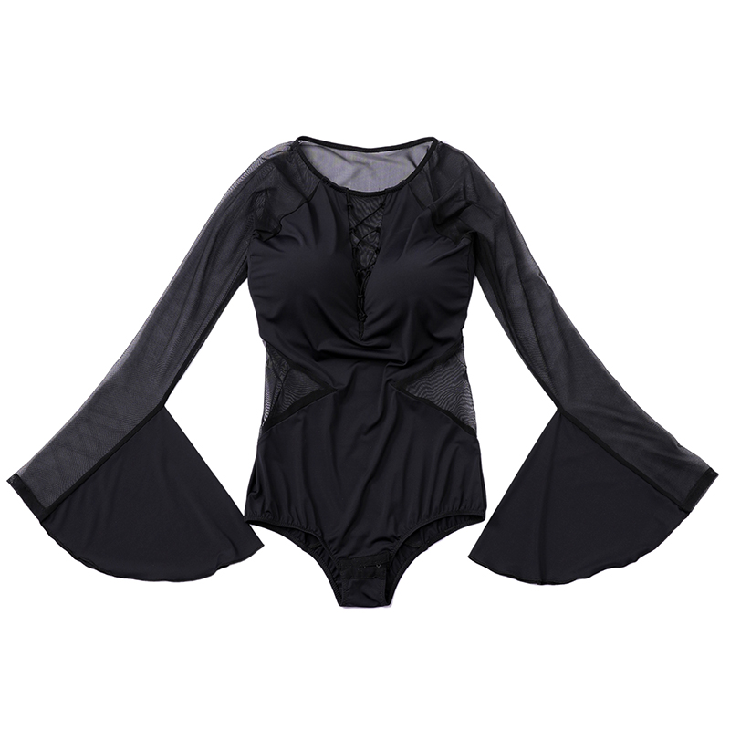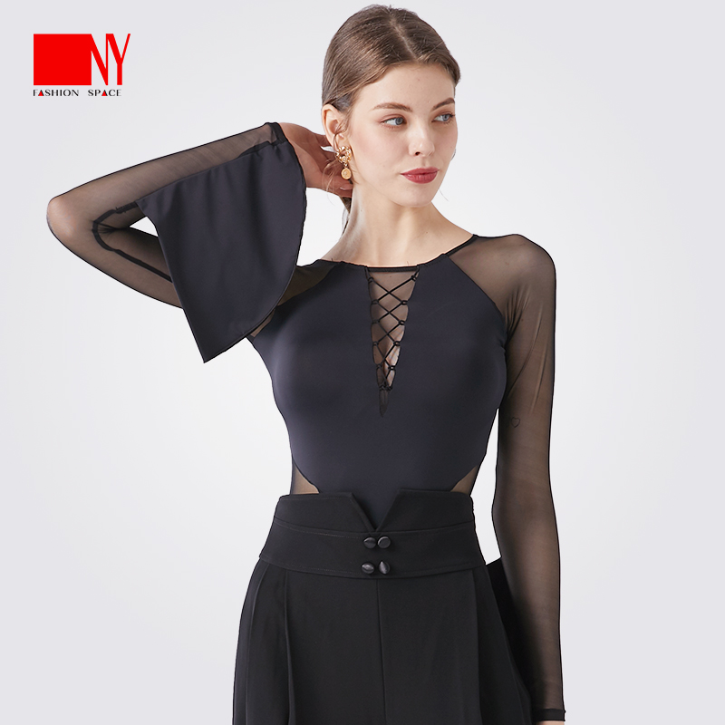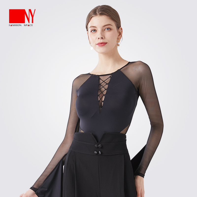 Nart Morden Dance Dress Blouse Women Adult Morden Dance Net Yarn Sleeves Splicing One-piece Blouse Long Sleeve Practice-Taobao