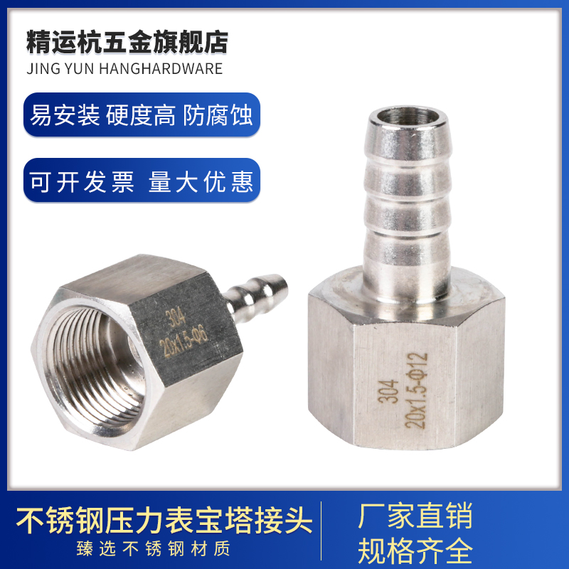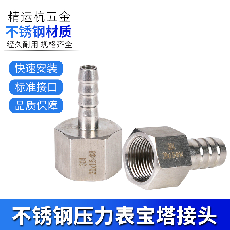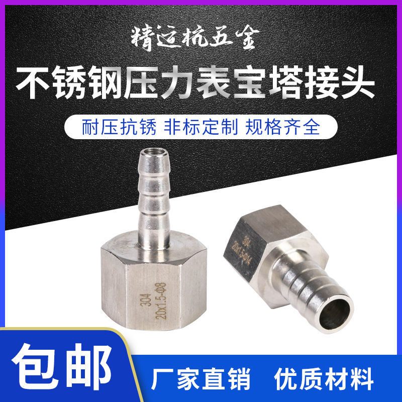 Thickened stainless steel 304 inner silk pagoda joint high pressure water gas tube hose connector pressure gauge hose transfer