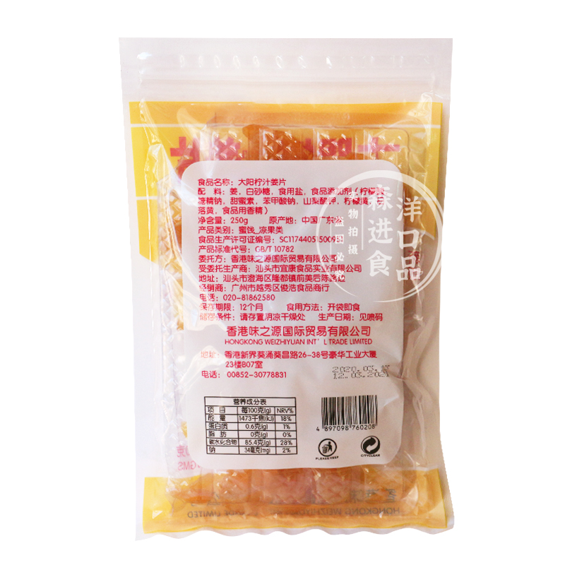 Large Yang Lemon Juice Ginger Slices 250gX1 Bag of the Ginger Ale