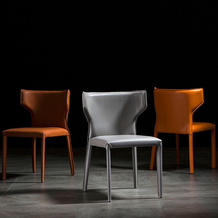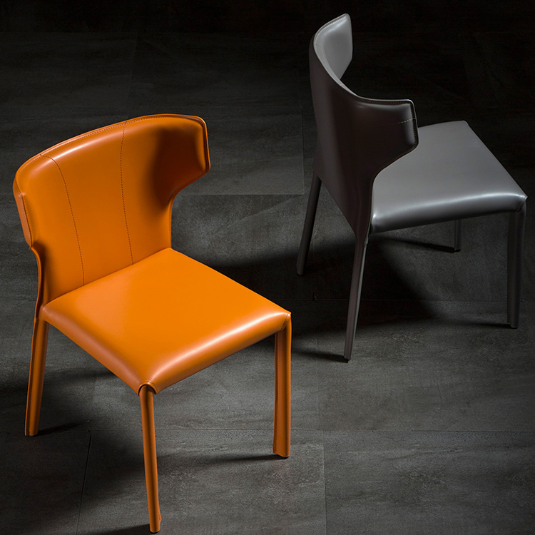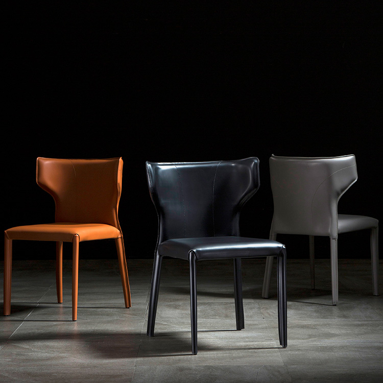 Nordic dining chair Household backrest chair Modern simple Italian dining room dining stool Saddle leather light luxury spot
