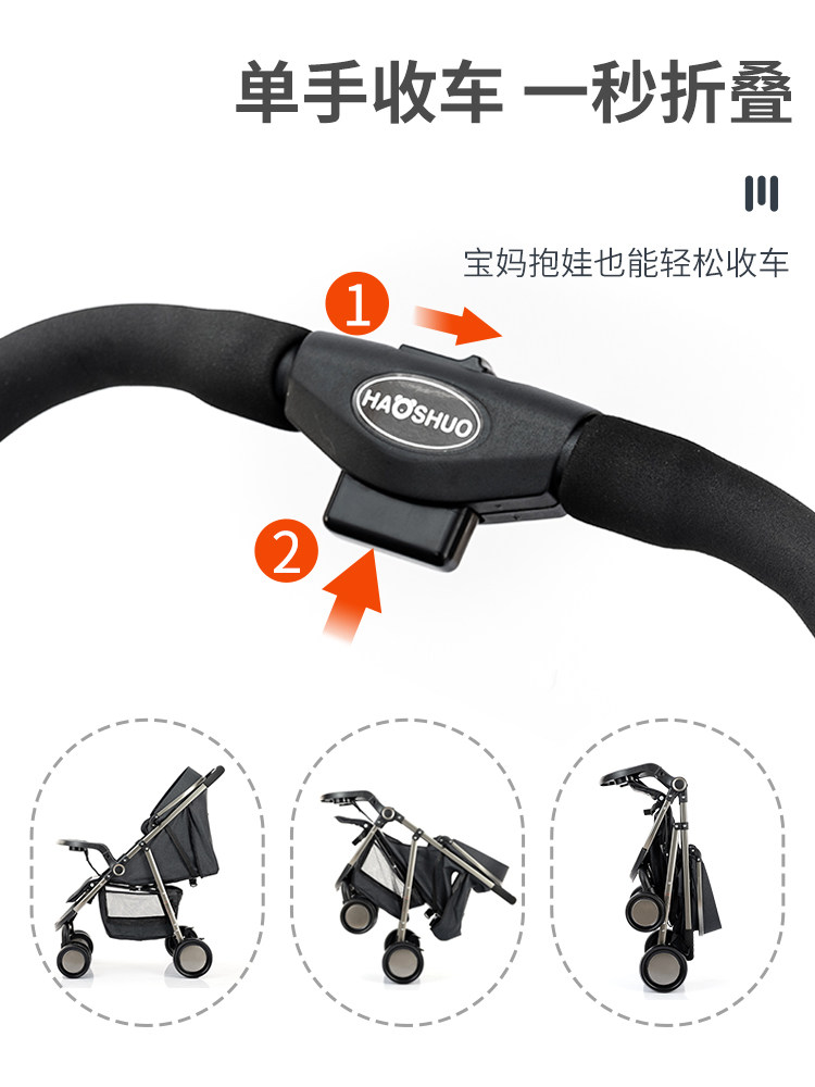 Haoshuo Baby Stroller Newborn Lightweight Folding Cart Can Sit And Lie Down Children Baby Baby Simple Trolley