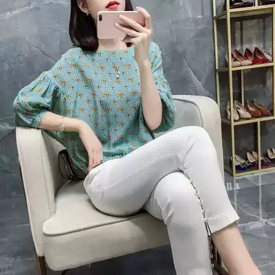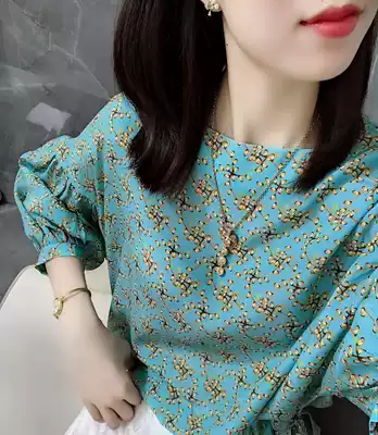 2020 new Korean version of early autumn chiffon shirt coat women short sleeve women Joker sweet foreign pie floral fashion T-shirt summer