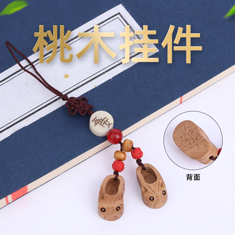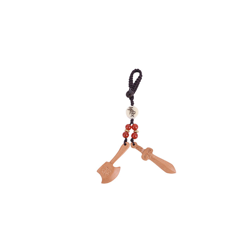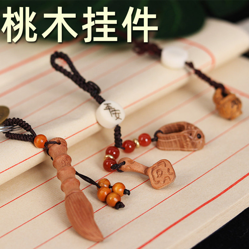 Peach wood axe thin thread pendant Peach wood Wenchang pen thin thread pendant Peach wood Ruyi thin thread pendant double tiger head shoes thin thread pendant peach wood money rake thin thread pendant copper dustpan peach wood sword rope knot pendant tiger head shoes Ruyi rope knot pendant