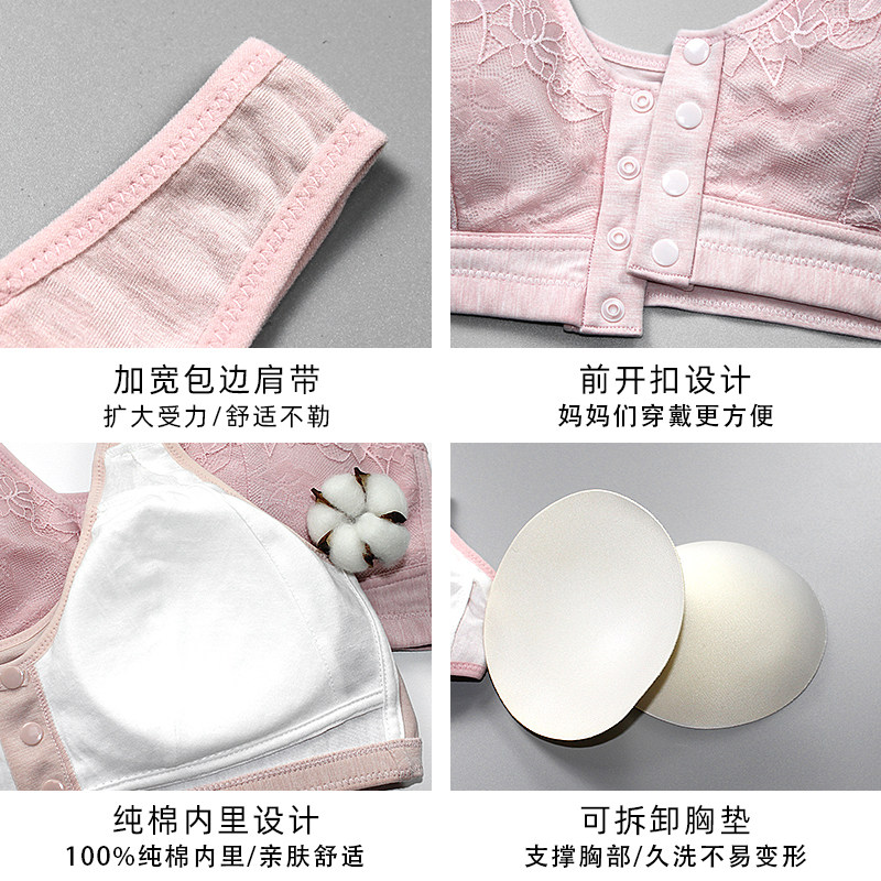 Middle-aged elderly underwear lace lace front buckle bra in cotton with bra thin