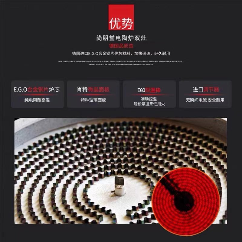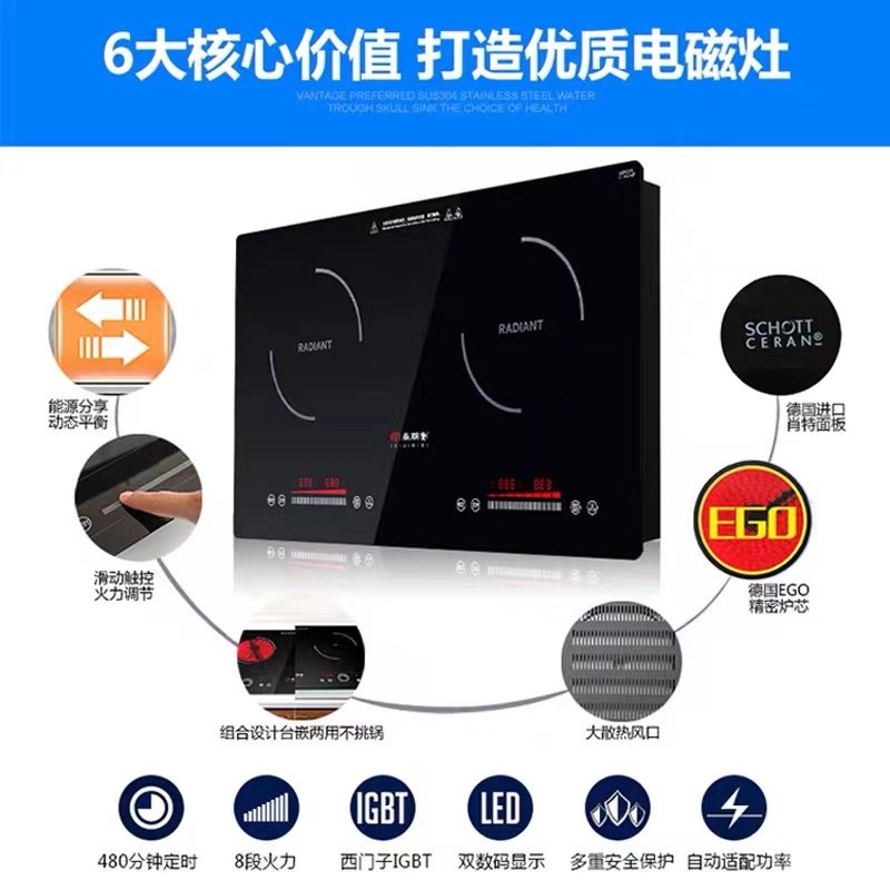 Shangpengtang black crystal furnace double-port gas furnace imported from Germany panel embedded mute household stir-fry induction cooker double furnace