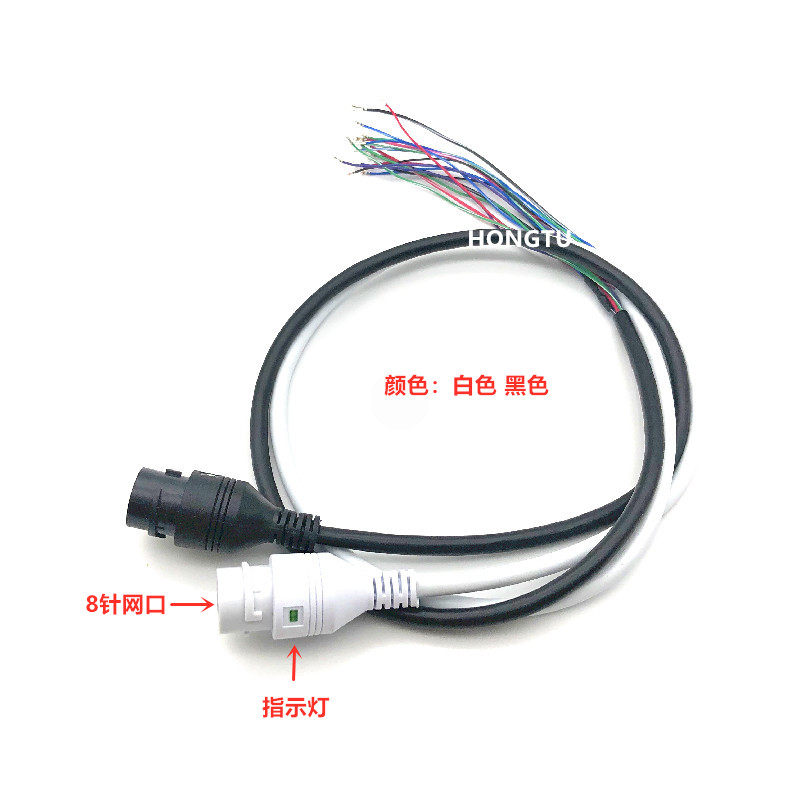 Waterproof Internet surveillance Photography lens tail line 9 Core 12VPOE Power supply tail line RJ45 Single-head Internet connector 8-pin loader line