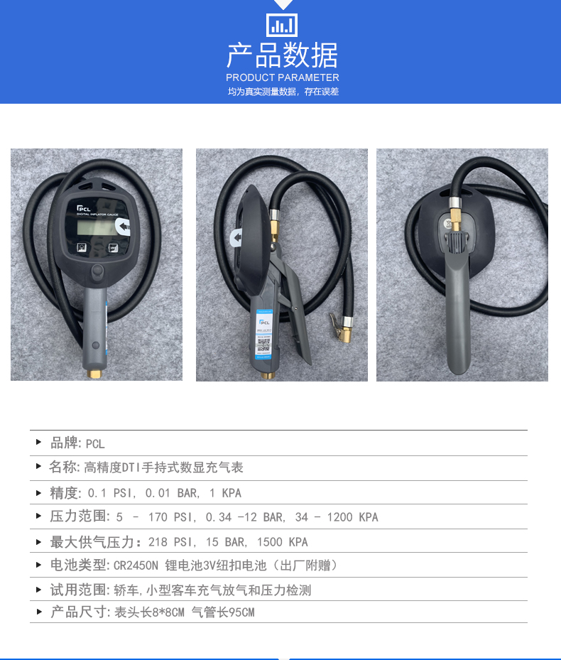 British PCL inflation meter Tire pressure meter High precision electronic digital display LCD Car tire inflation meter Trachea accessories