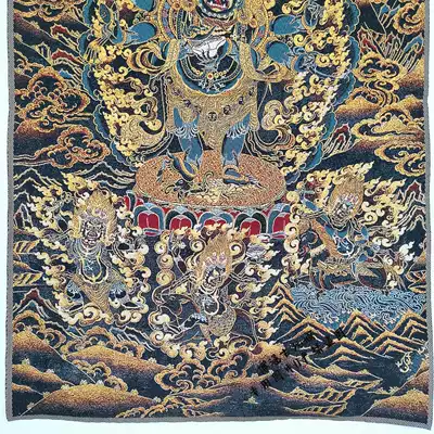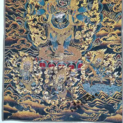 Thangka gold silk embroidery brocade tantric embroidery black gold hair care black six-armed Mahagara big black sky hair care portrait