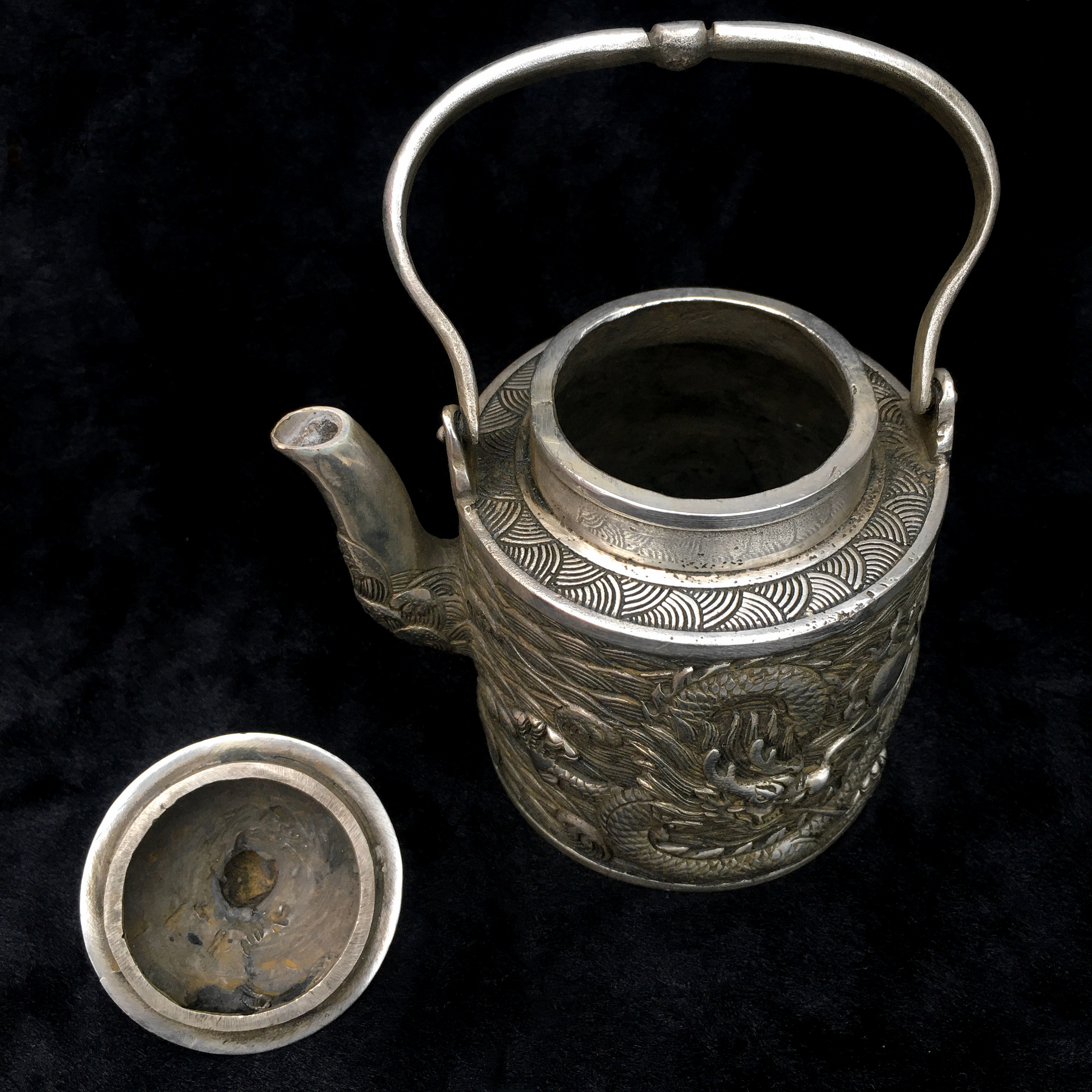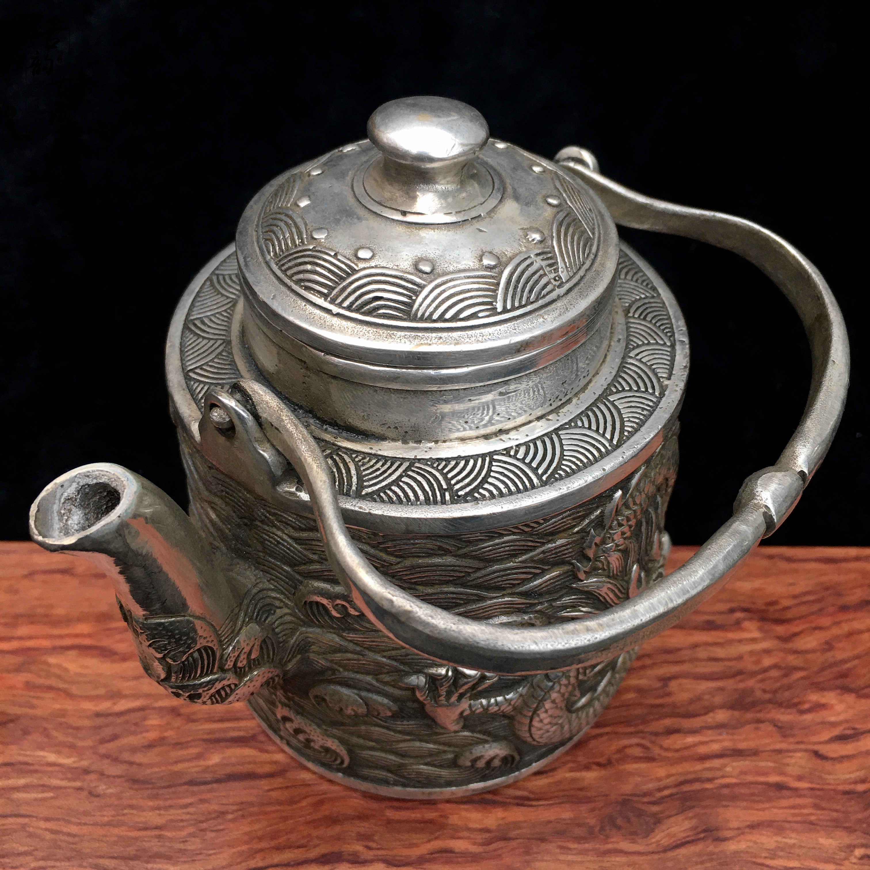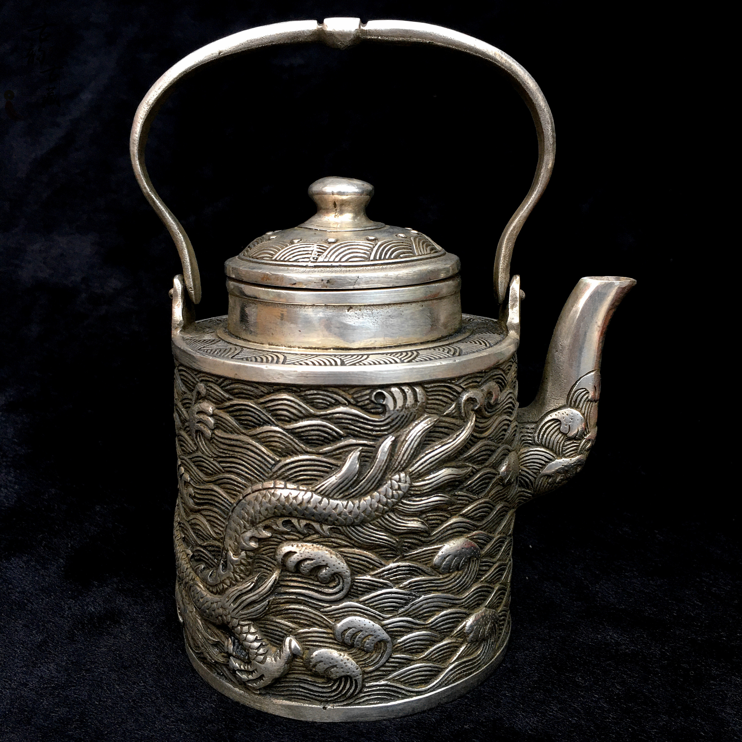 Daqing drylong annual silver pot fittings flying dragon pot antique copper teapot antique copper pot