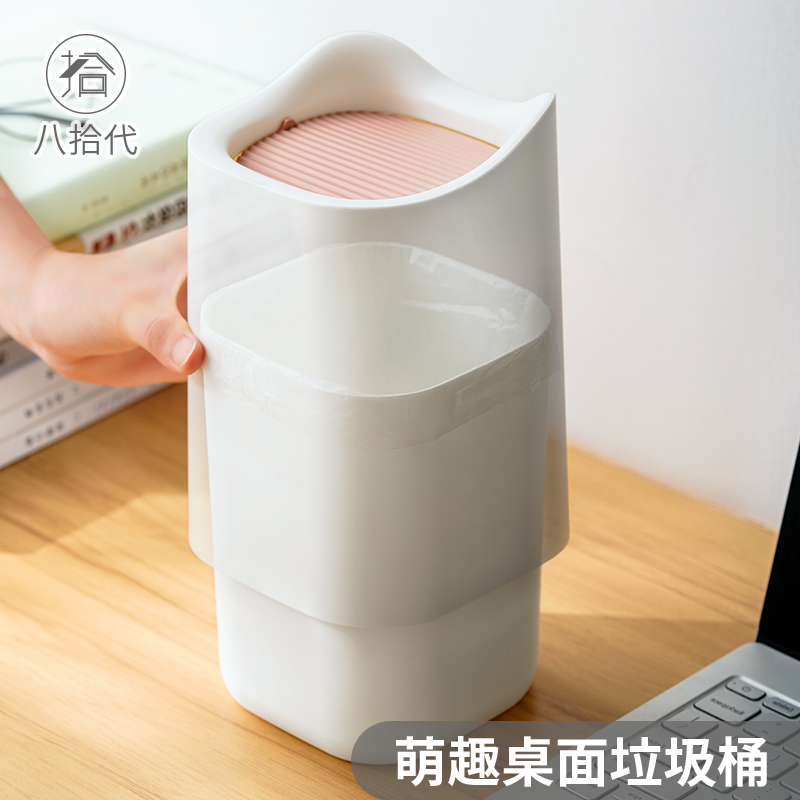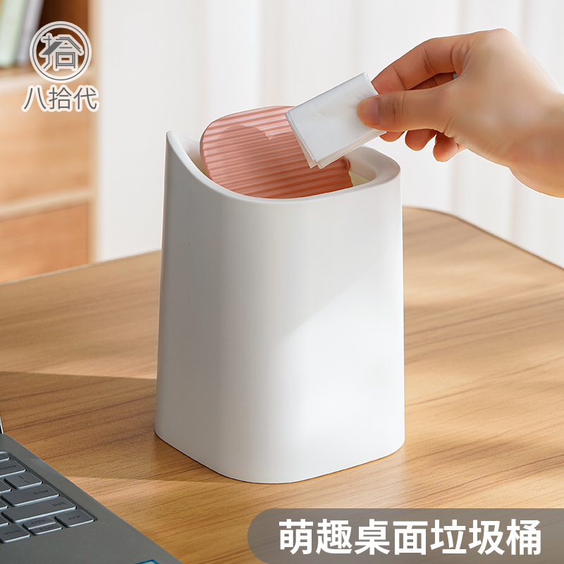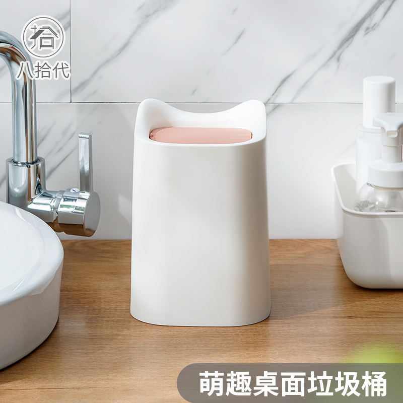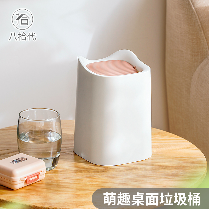 Eight-ten-generation Mini desktop trash can small on-board trash can with lid adorable rectangular trash can plastic