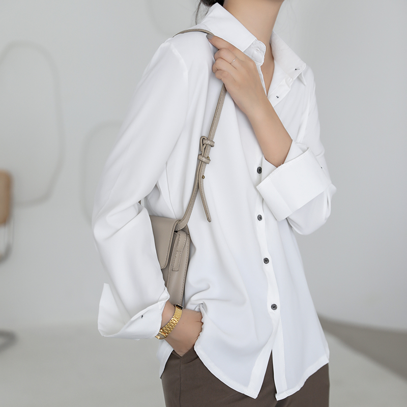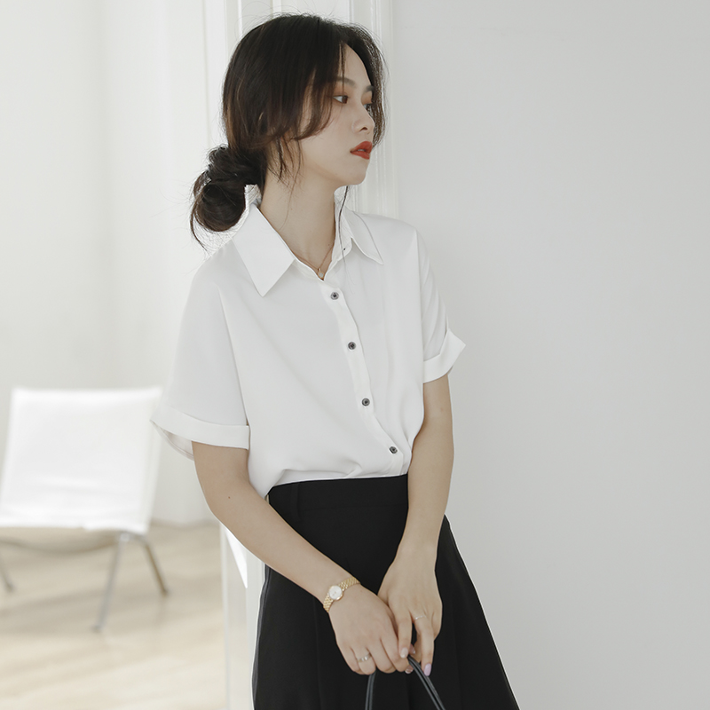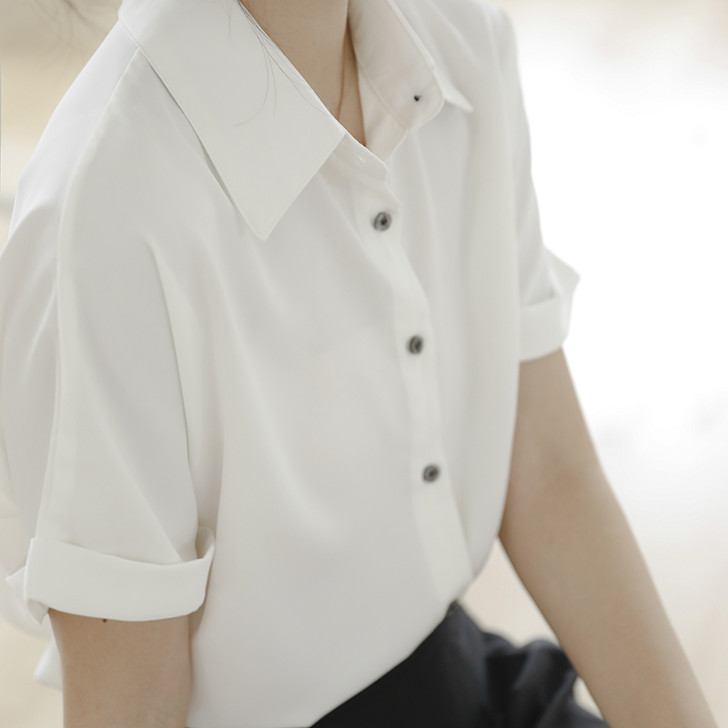 White Shirt Woman Summer Short Sleeve Design Sensation Small Crowdsourced style retro snow spinning blouses for work clothes Temperament 100 Hitch Lining
