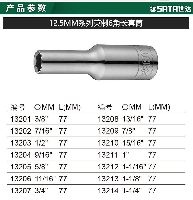 Shida 12 5MM series Dafei British 6-angle long sleeve 13201 13202 13203 13204 13205