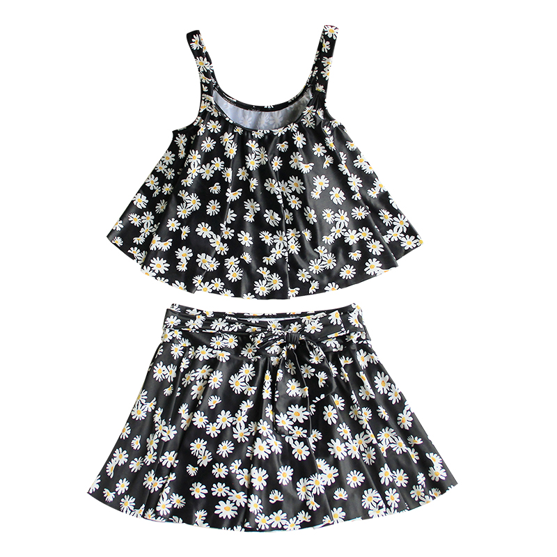 Black little daisy les swimsuit girl split skirt style conservative cute student swimming class couple swimsuit