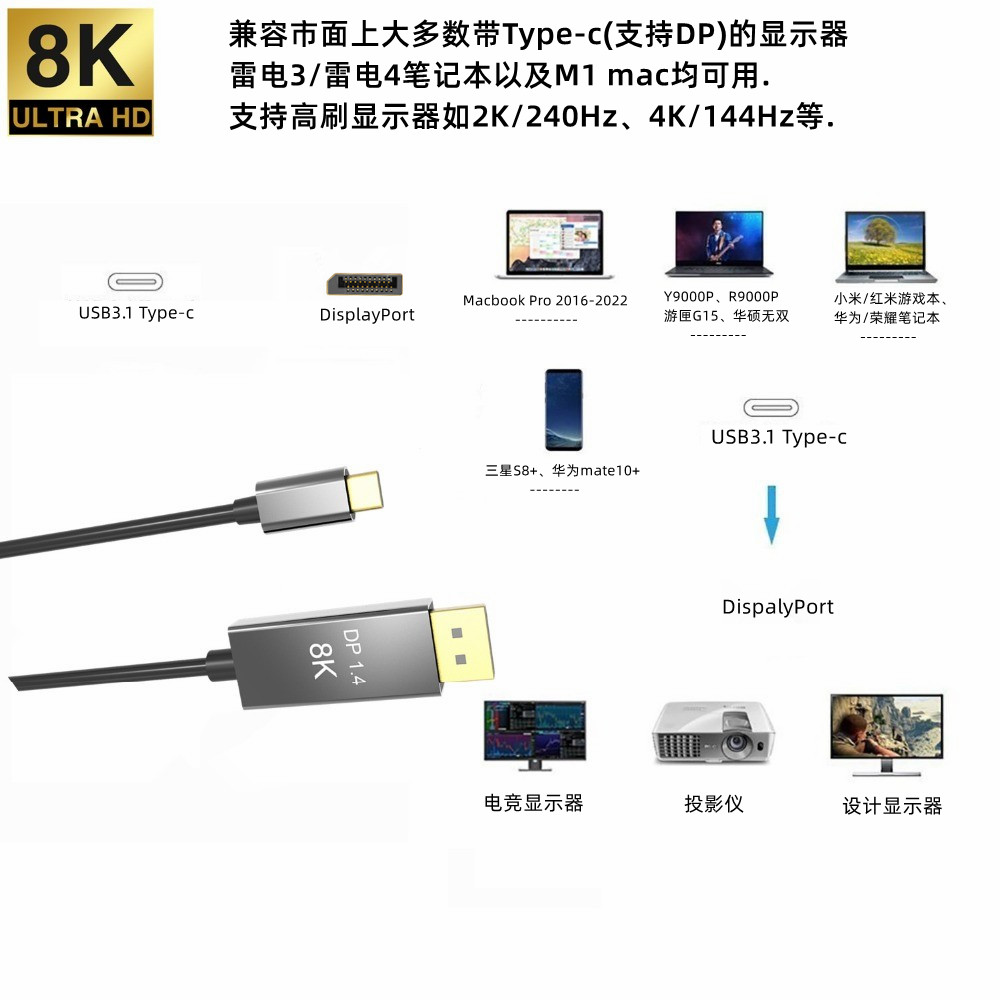 typec turn dp line 1 4 version 240Hz display G15 Y9000 notebook lightning 4 connection line 4K144hz