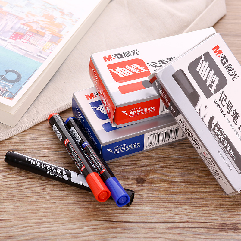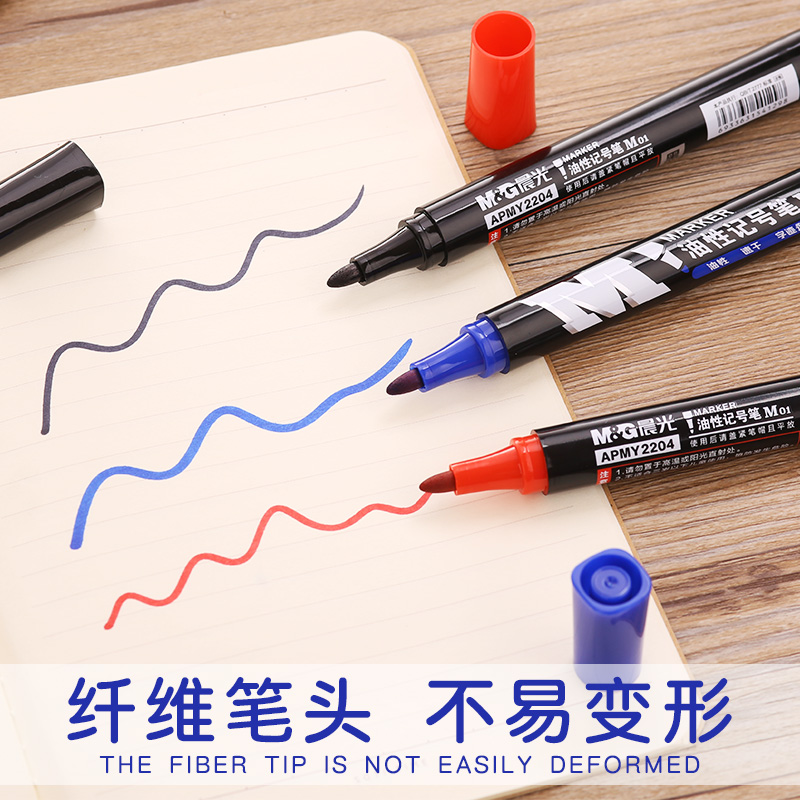 Morning light note pen black blue red coarse head large capacity oily mark pen hook line waterproof speed dry without dropping color-Taobao