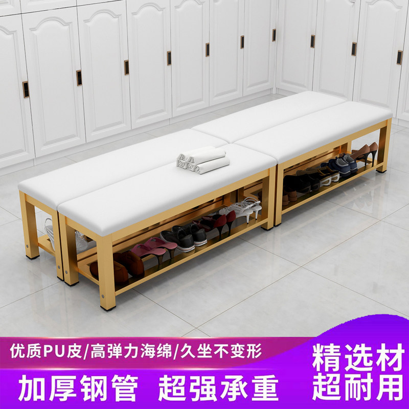 Bathroom dressing room Bench Long Bench Strip Stool Long Bench Shoe Shop Mall changing shoes Stool Soft Bag rest Bench Iron Art Wood