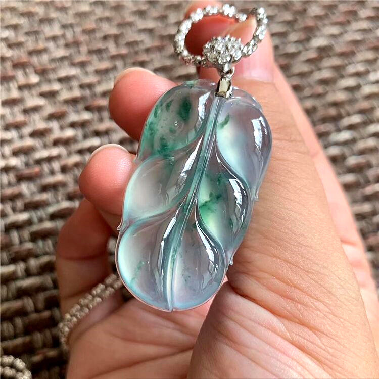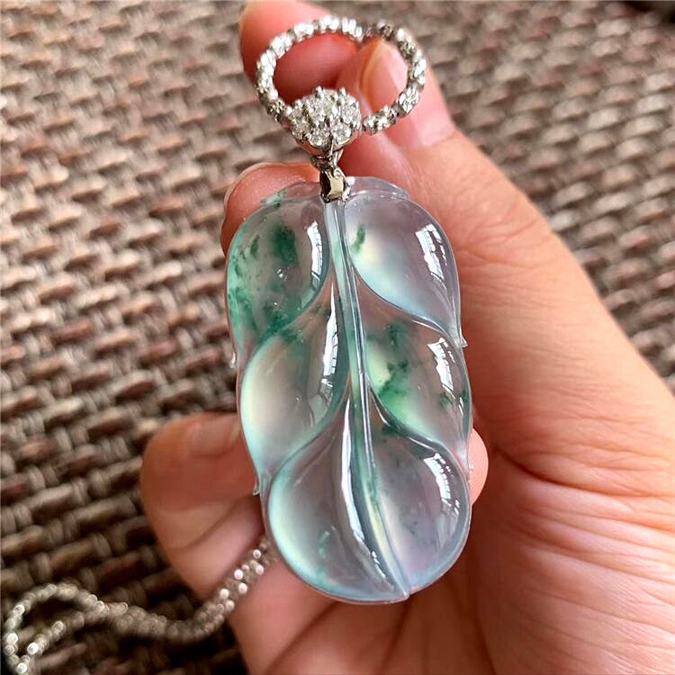 Natural Myanmar jade leaf pendant safety buckle Guanyin Buddha Male Ice species floating flower jade bracelet A goods female section
