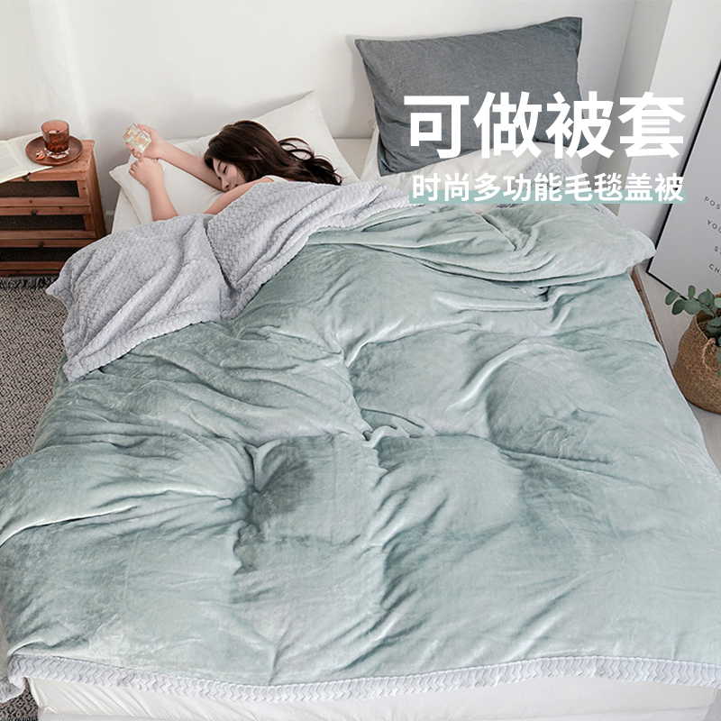 High-dense non-hair double blanket (light blue ash) with high density of wool bilayer blanket (bean green) with high density of not dropping hair double layer blanket (fairy powder) with high density of not dropping hair double layer blanket (green ash) high