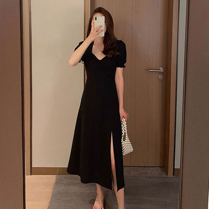 Early spring with thin waist waist 2021 new women's summer clothes French light mature autumn black care machine dress