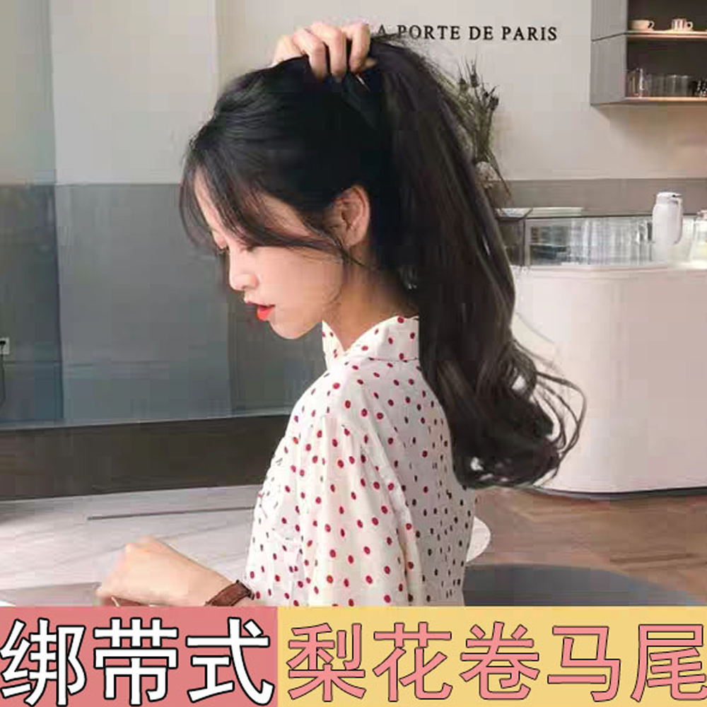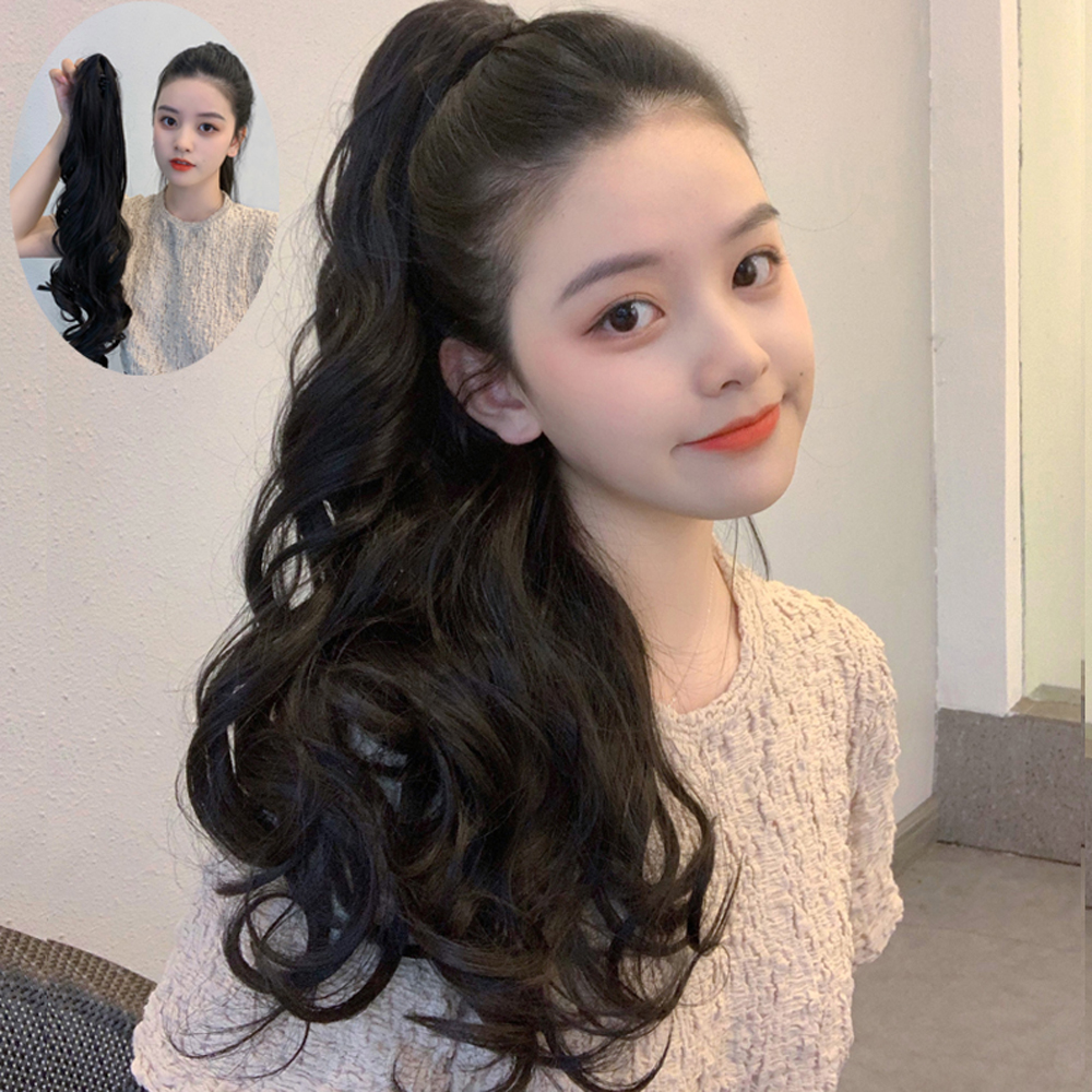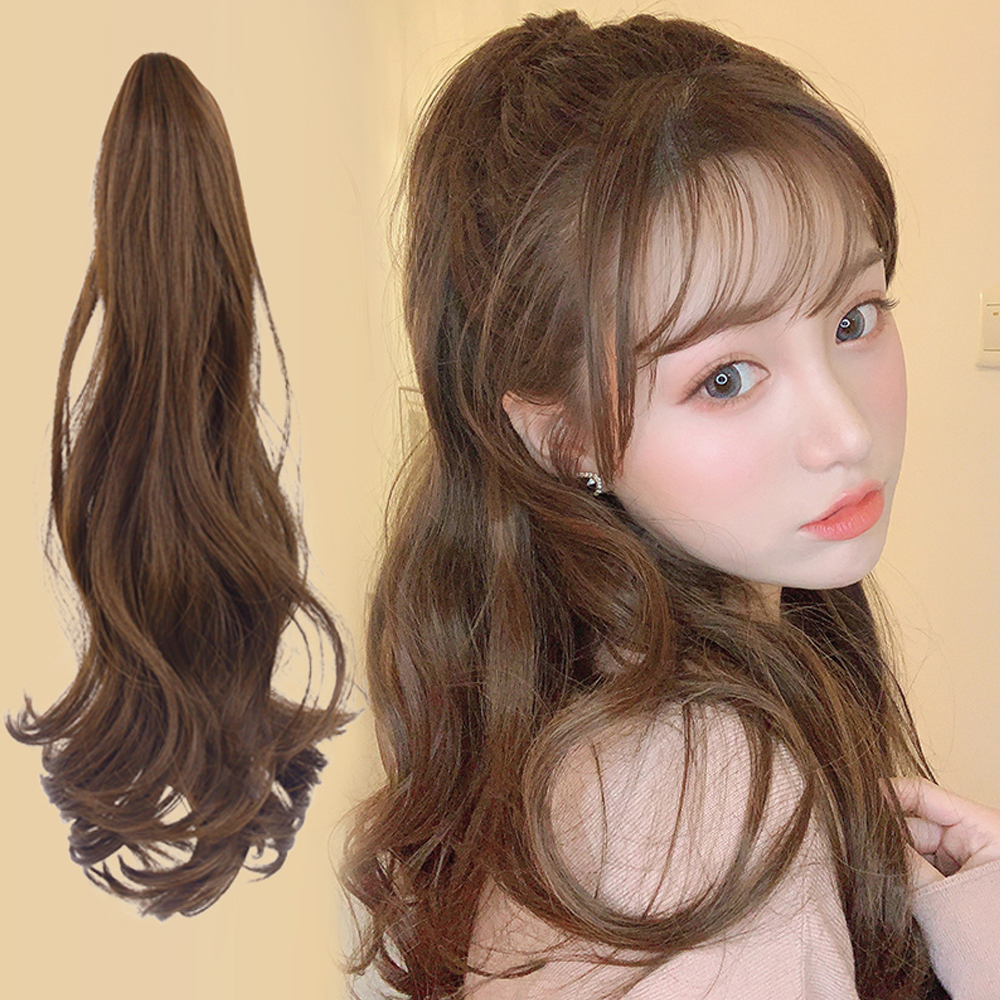 Wig female ponytail long hair bandage type big wave long curly hair natural seamless fluffy grab clip-type high ponytail braid