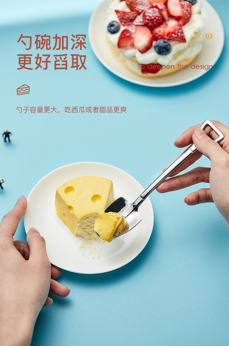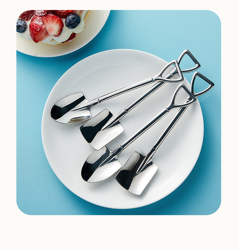 304 Stainless Steel Shovel Spoon Sweet to Eat Watermelon Soup Porridge Retro Creative Soup Spoon Cute Shovel Shaped Small Spoon Soup Spoon
