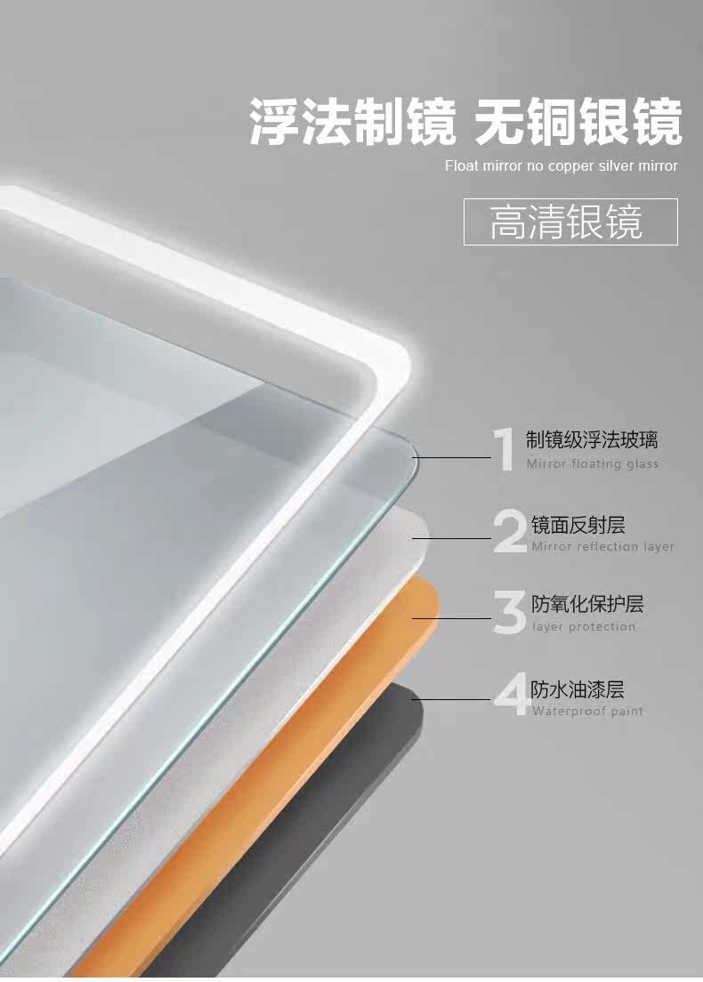Round mirror 60*60 cold light defogging square mirror 80*60 cold light defogging square mirror 90*70 Cold light defogging square mirror 1 m*80 Cold light defogging square mirror 1 2 m*80 cold light