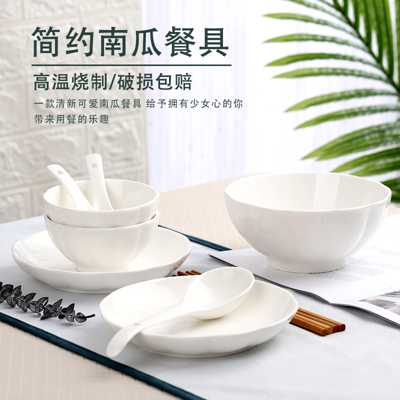 Green pumpkin 2 bowls, 2 plates, 2 spoons, 2 chopsticks 4 chopsticks 2 sides