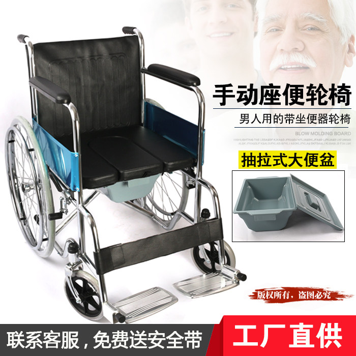 High leaning with baby bag toilet Older people Folding Hand Wheelchair Multifunction Fracture Can leg Rehabilitation wheel chair cart