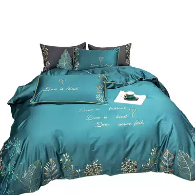 Cotton 60s four-piece set 100 cotton tribute satin long staple cotton European embroidery double quilt cover bedding sheets