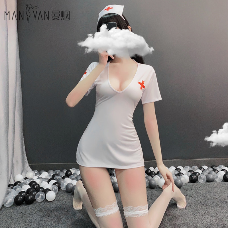 Erotic lingerie sexy show short-sleeved nurse outfit small chest backless uniform temptation passion suit bed tease jx