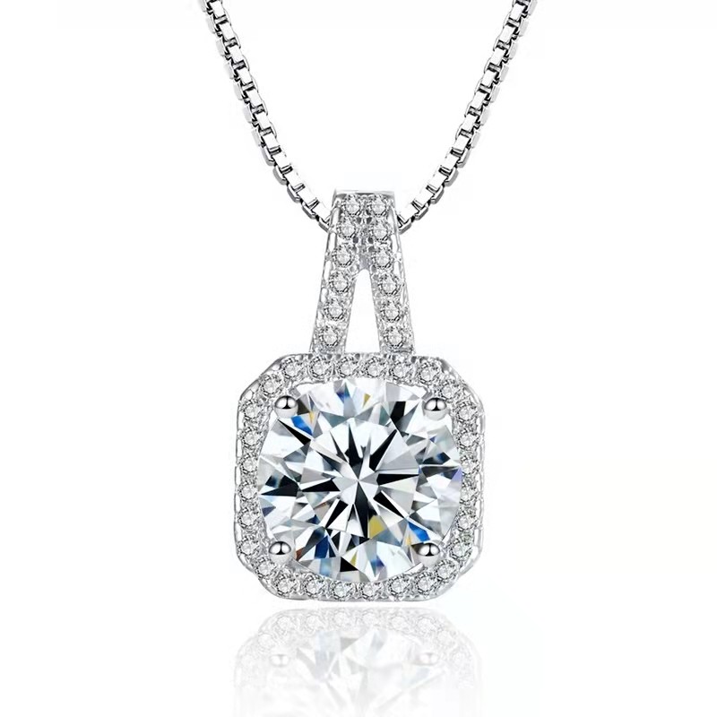 New classic four-claw square drill necklace pure silver lock bone chain 100 lap lady with a 2 carat pendant gift to send girlfriend