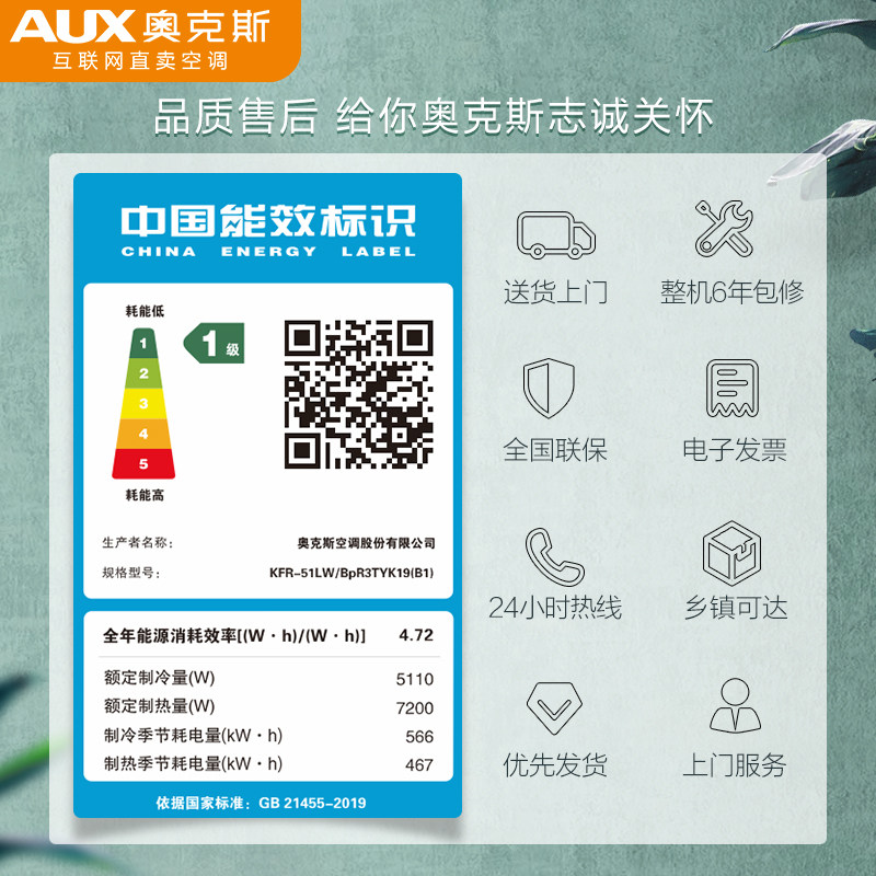 AUX KFR-51LW BpR3TYK19 (B1)Household living room 2 HP first-class variable frequency vertical air conditioner