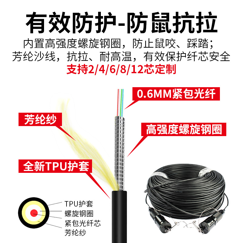 Sealed single-mode dual-core outdoor TPU field cable cable car wall aviation head put cable car Armored waterproof base station communication field pull practice repair 2-core fiber jumper LC FC SC ST