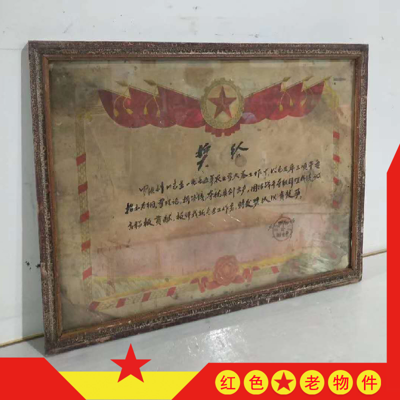 70s Old Objects Second-hand Award Shaped Picture Frame Hang Painting Red Culture Nostalgia Collection Retro Film and TV props swing pieces
