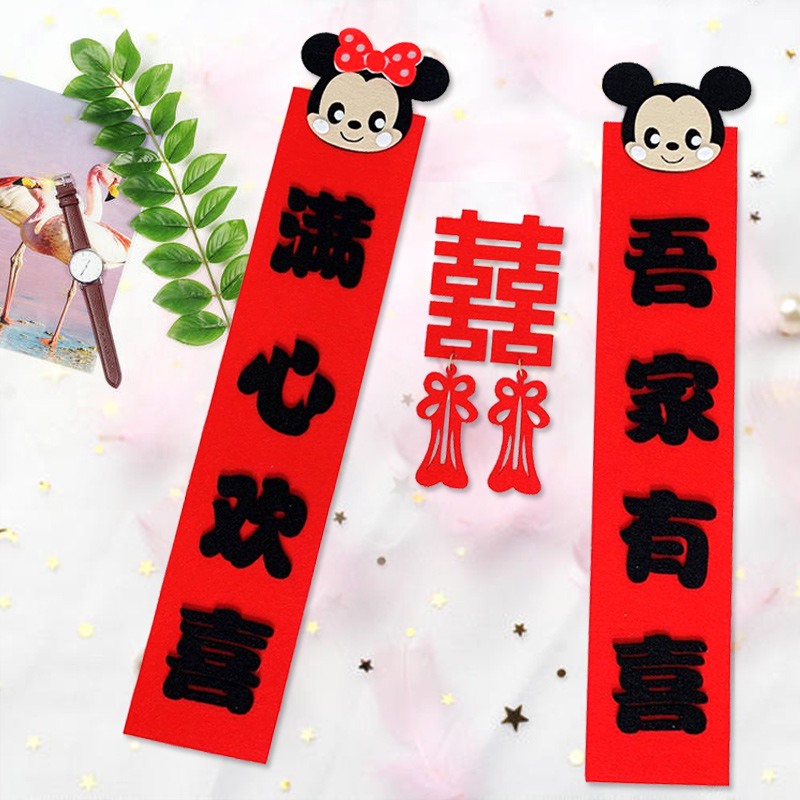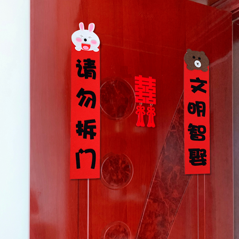 Blocking the door, blocking the door, welcoming the relatives, game props, creative door stickers, wedding couplets, ins wedding room door stickers, cartoon couplets