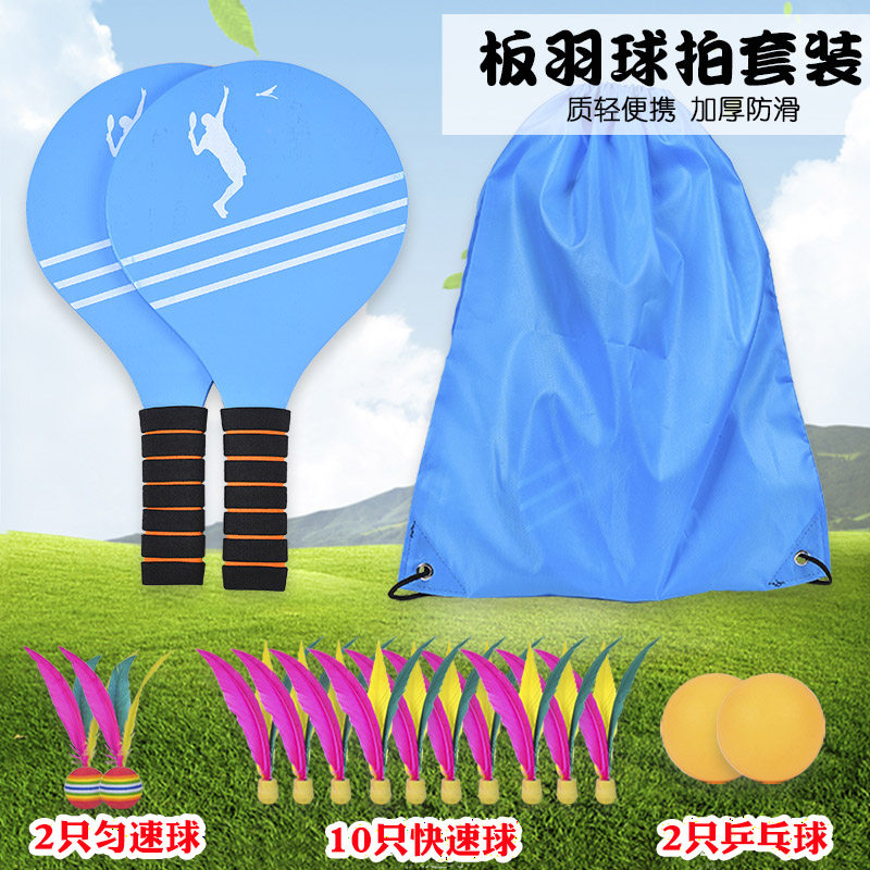 Board badminton racket set Three hair ball shuttlecock with shuttlecock solid wood set Adult children indoor chicken feather ball sports