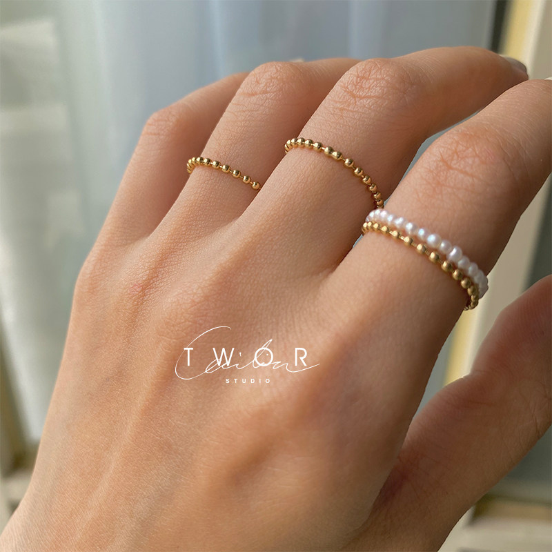 TWOR original hand made for US 14k bag gold small gold pearl chain ring Jane Joins lukewarm wind laminated ring
