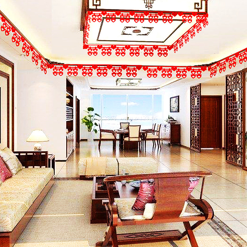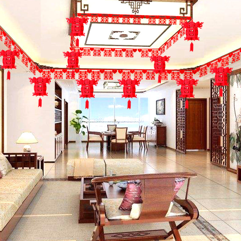 Wedding supplies wedding room living room room decoration pull flower men and women bridal room wedding layout wedding festive curtain set