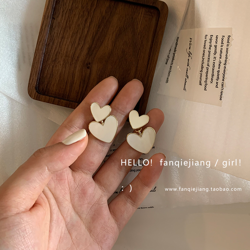 Very special milky white double loving earrings summer fresh 100 hitch pins women's ins the new wave 2020