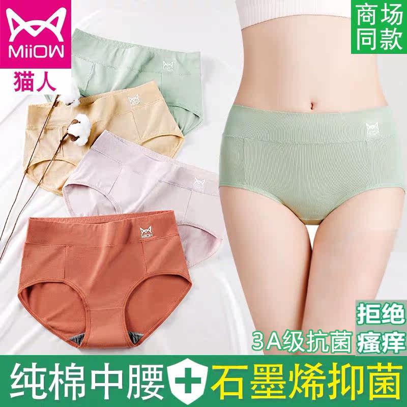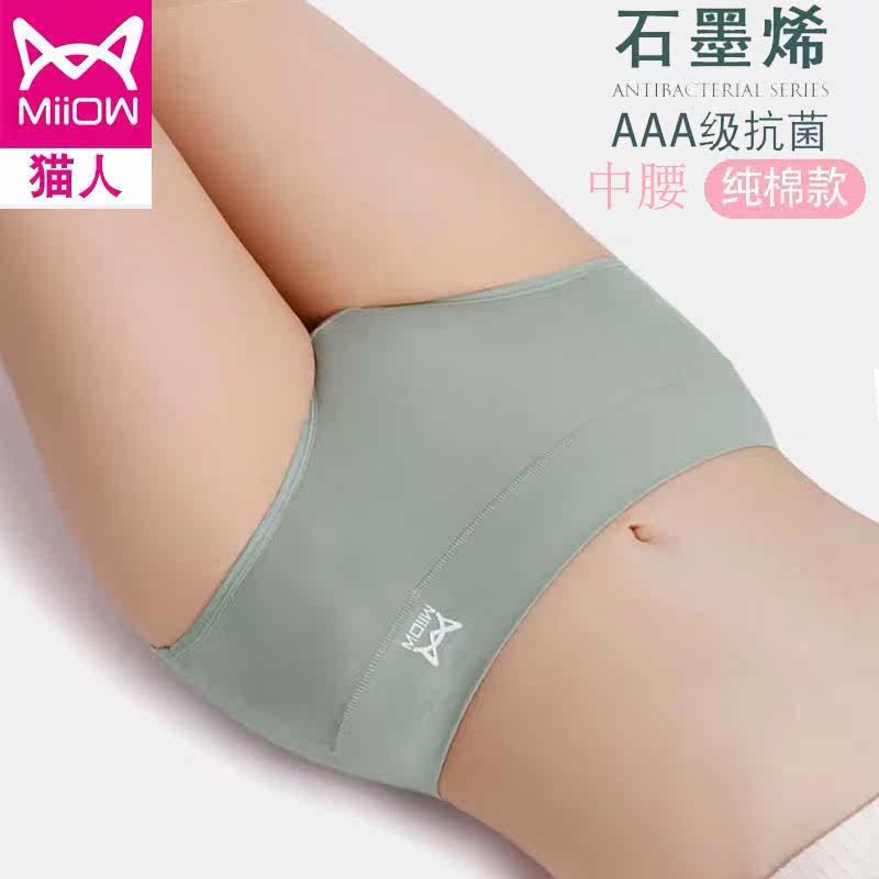 Cat people underwear women's cotton antibacterial mid-waist large size breathable ladies graphene cotton belly triangle shorts head women