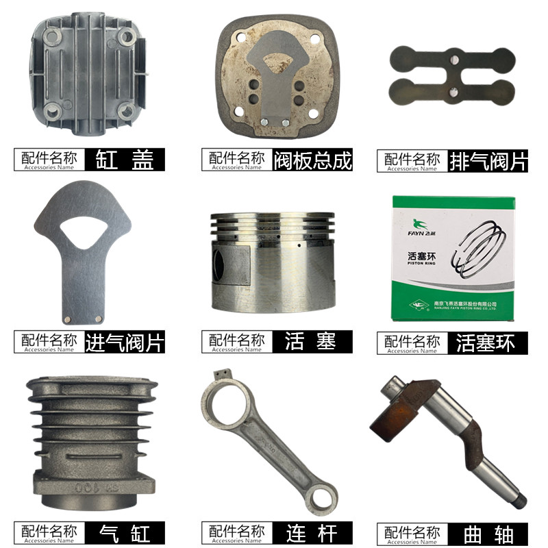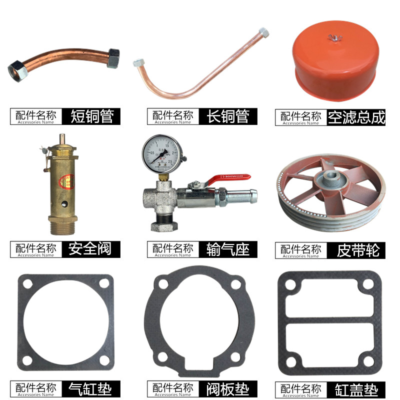 Crankshaft Even lever piston piston ring cylinder valve plate assembly cylinder head air filter element assembly short copper pipe pressure meter waist type oil mark four-way seat safety valve belt pulley gasket suit long copper pipe gas transmission seat assembly intake valve sheet (excellent