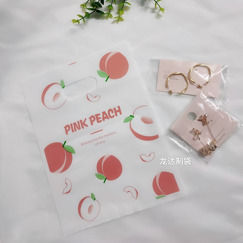 Original peach trinkets gift bag Korean version hairpin earrings Hairband Head rope Plastic handbag bagging